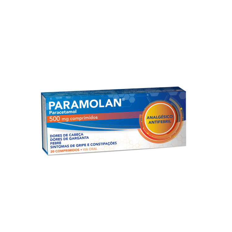 PARAMOLAN® comprimidos contém 500mg de paracetamol que alivia as dores (analgésico) e faz baixar a febre (antipirético).Está indicado no tratamento de dores ligeiras a moderadas, dores de garganta (excluindo amigdalites), cefaleias (dores de cabeça) lige
