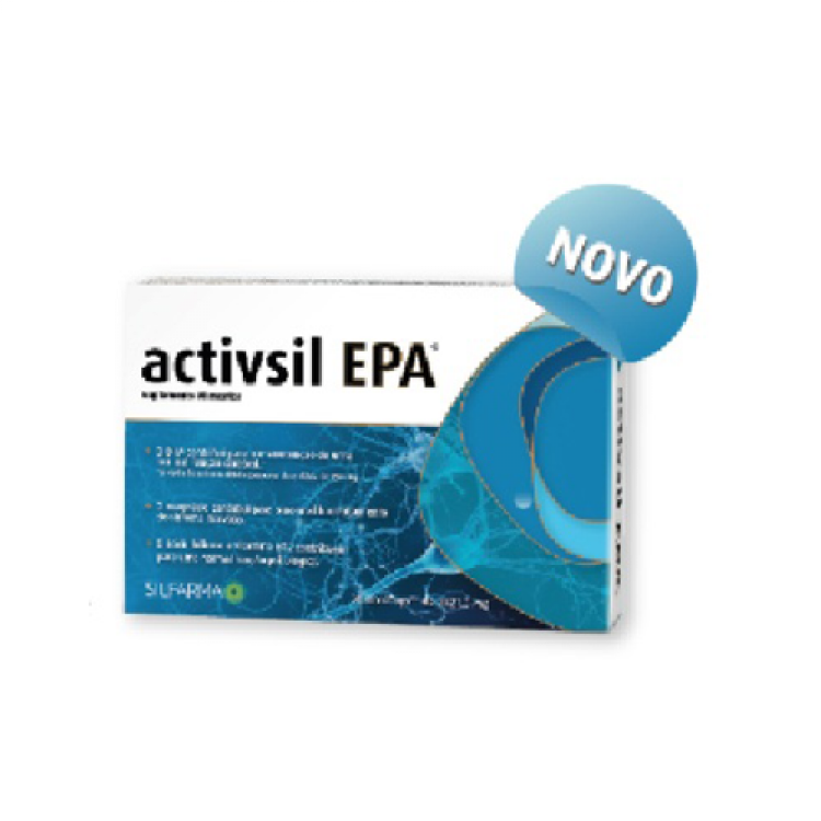 Activsil EPA é um suplemento alimentar que contém óleo de peixe rico em ácidos gordos ómega-3 (DHA e EPA), magnésio, vitamina E, vitamina B12 e ácido fólico.