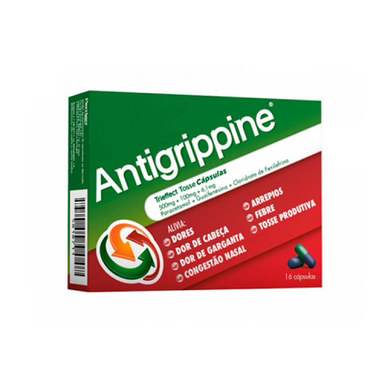 Antigrippine Trieffect Tosse , 500 mg + 6.1 mg + 100 mg Blister 16 Unidade(s) Caps