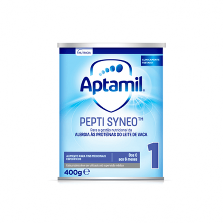 Aptamil Pepti Syneo 1 é um alimento para fins medicinais específicos, completo e adequado como fonte alimentar única, especialmente indicado para a satisfação das necessidades nutricionais dos lactentes com alergia às proteínas do leite de vaca, desde o nascimento até aos 6 meses de vida.