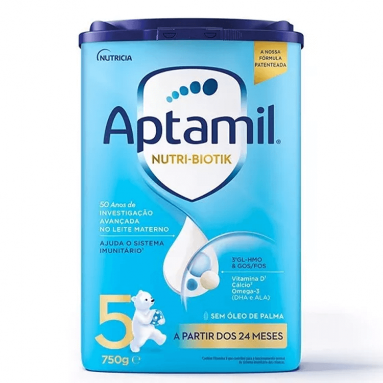 Aptamil Nutri-Biotik 5 é uma bebida láctea infantil adaptada às necessidades nutricionais específicas das crianças a partir dos 24 meses, quando consumido como parte de uma dieta equilibrada, não é um substituto do leite materno.
