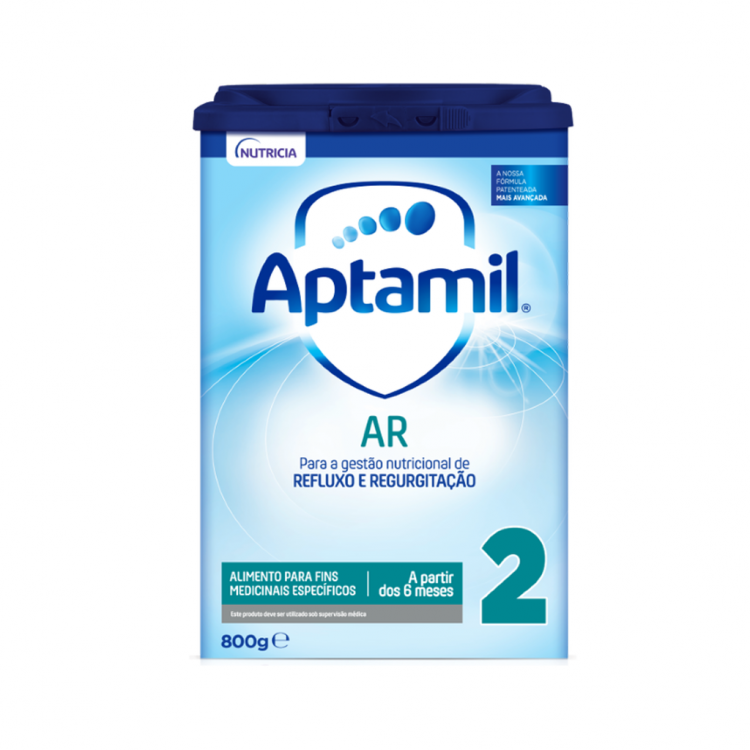 Aptamil AR 2 contém um ingrediente específico (farinha de alfarroba), um espessante natural que torna o leite mais viscoso durante o processo digestivo, e que está clinicamente provado para a redução da regurgitação. Aptamil AR 2 garante as necessidades nutricionais dos lactentes desde os 6 meses até ao fim da lactância, para um crescimento e desenvolvimento adequados. Formato de 800g.