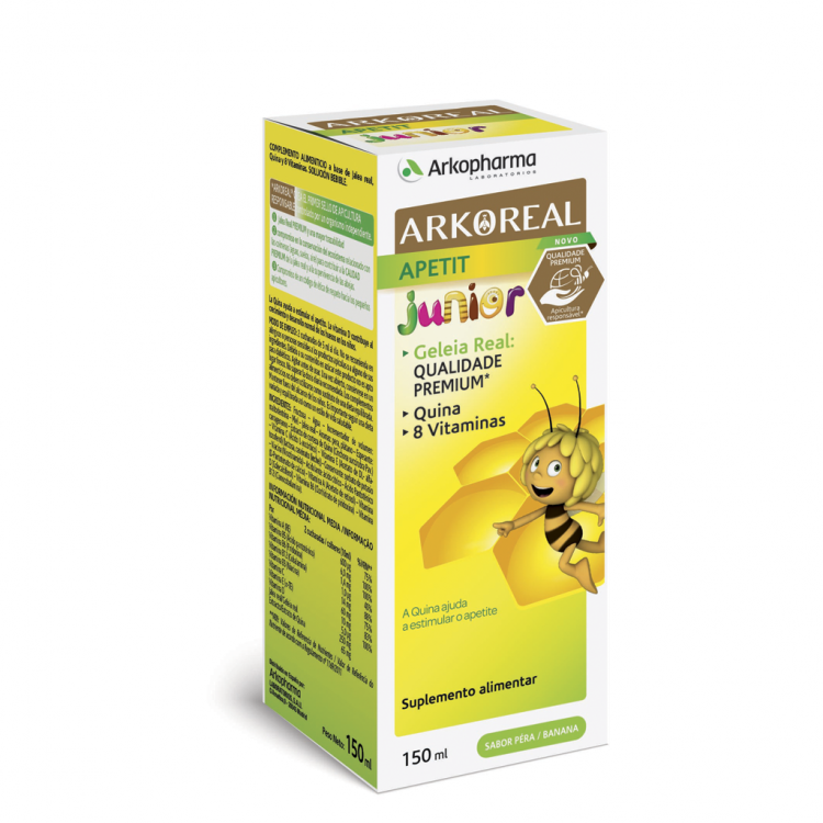 ARKOREAL® Apetit Solução Bebível é um suplemento alimentar à base de Geleia Real, Quina e 8 Vitaminas. Solução bebível. A Quina ajuda a estimular o apetite. A vitamina D é necessária para o normal crescimento e desenvolvimento ósseo das crianças.