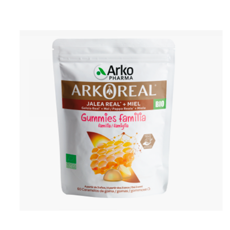 Arkoreal Geleia Real são algumas das gomas BIO, únicas no mercado, que contêm exclusivamente Geleia Real 100% BIO e Mel Sabor Laranja para toda a família.