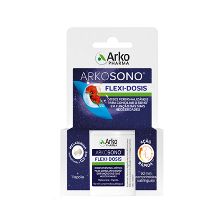 Arkosono® FLEXI-DOSIS é composto por comprimidos sub-linguais que contêm mini doses de Melatonina e Papoila, oferecendo uma solução para os problemas de sono, personalizada às necessidades específicas de cada um. A fórmula à base de Papoila, que contribui para o relaxamento e sono, é reforçada com 0,5mg de Melatonina por comprimido.