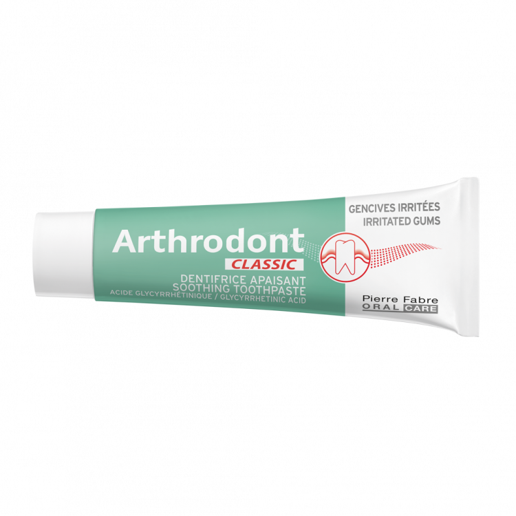 A pasta dentífrica ARTHRODONT CLASSIC está indicada para as situações de gengivas irritadas* ou com alterações ocasionais. Àcido glicirretínico, com propriedades calmantes, suaviza as gengivas.