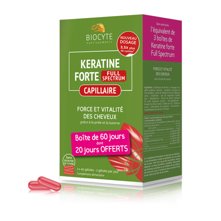 Biocyte Keratine Extra Plus Trio um suplemento alimentar que proporciona um cabelo mais forte e o aumento do crescimento.