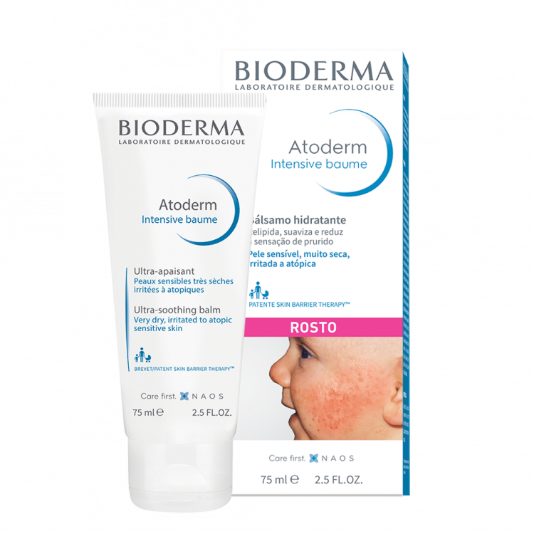 Cuidado diário da pele atópica. ROSTO. Aplicar 1 a 2 vezes por dia na pele previamente limpa com Atoderm Intensive Gel moussant ou Atoderm Intensive Pain. Em monoterapia ou associado à corticoterapia.