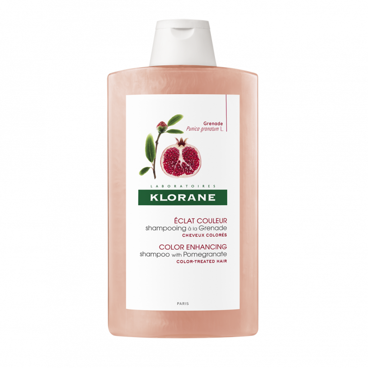 Klorane Capilar Champô Romã para cabelos pintados, colorações ocasionais. Captura e fixa a cor. Protegida, a cor é reavivada e iluminada.
