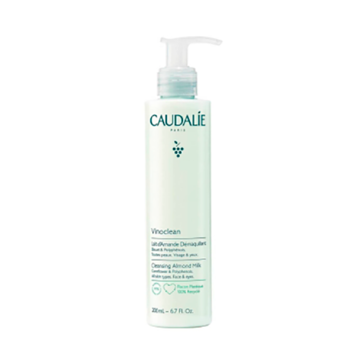 Caudalie Vinoclean Leite de Amêndoas Desmaquilhante tem uma textura em leite aveludado e ultra confortável, com uma fórmula vegan 97% de origem natural: óleo de jojoba e amêndoas doces, manteiga de karité, extrato de centáurea azul, polifenóis e óleo de ricínio para uma ação de limpeza calmante, suavizante, iluminadora, hidratante, anti-inflamatória, descongestionante, antioxidante e fortificante.