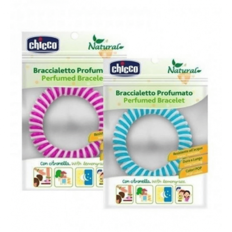 Chicco Pulseira de Silicone Perfumada é uma pulseira em silicone, divertida e colorida, que protege contra as picadas de mosquitos.