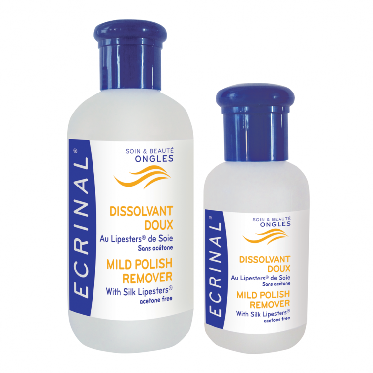 Ecrinal Dissolvente Suave remove o verniz suavemente de todo o tipo de unhas.