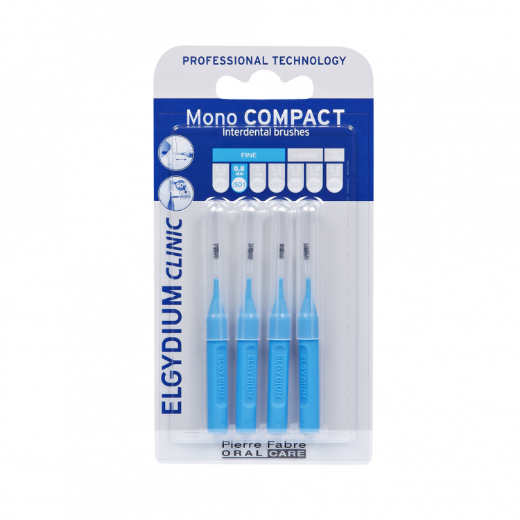 ELGYDIUM CLINIC ESCOVILHÕES MONO COMPACT são escovilhões concebidos para higienizar os espaços interdentários e impedir a formação de placa bacteriana entre os dentes.