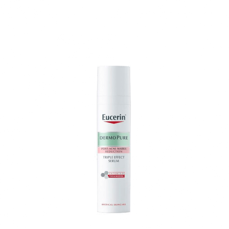 O Sérum Triplo Efeito Eucerin DermoPure com Thiamidol patenteado permite vencer finalmente as imperfeições e as marcas pós-acne devido a 3 fatores principais: