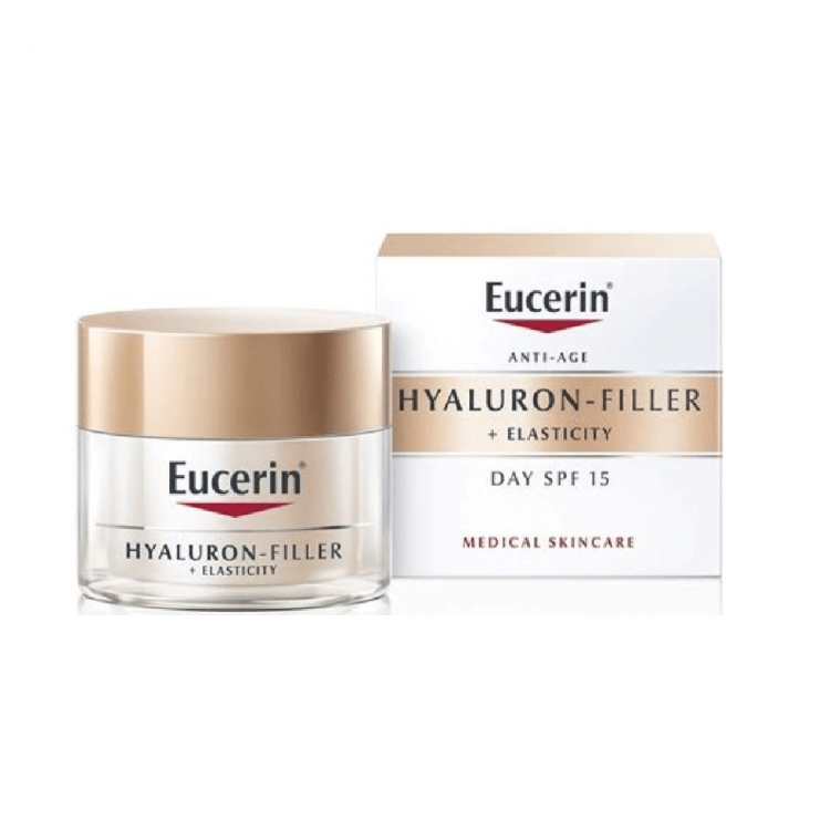 Eucerin Hyaluron Filler + Elasticity Filler Creme Dia é um creme de dia reafirmante, que hidrata, reafirma e preenche as rugas mais profundas.