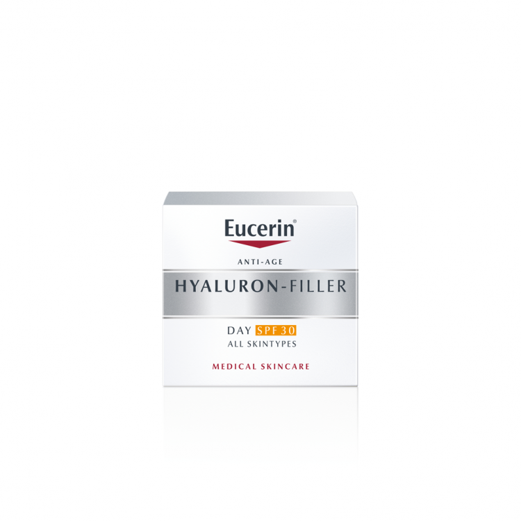 Eucerin Hyaluron-Filler Creme Dia Pele Normal a Mista é uma fórmula avançada antirrugas à base de Ácido Hialurónico, um ativo que atua sobre uma rede completa de rugas, desde as rídulas até às rugas mais profundas e estabelecidas. A sua formulação contém ainda Saponina Glicina bioactiva, substância que ajuda à produção natural do ácido hialurónico da pele. A pele fica mais suave e com um aspeto mais jovem. Protege da radiação solar UVA e UVB (SPF15). Pode ser usado como base de maquilhagem. Não comedogénico.