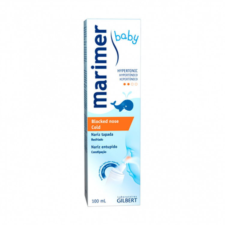 Marimer Baby Hipertónico é uma solução fisiológica e hipertónica de água do mar (equivalente a 22g/l de sais) estéril e microdifundida. Naturalmente rico em sais minerais e oligoelementos marinhos, este spray é recomendado para a higiene e descongestão das fossas nasais em bebés e crianças nomeadamente em caso de constipação. O sistema de microdifusão permite uma abertura óptima das fossas nasais e o tamanho reduzido das partículas oferece uma maior adesão à mucosa.