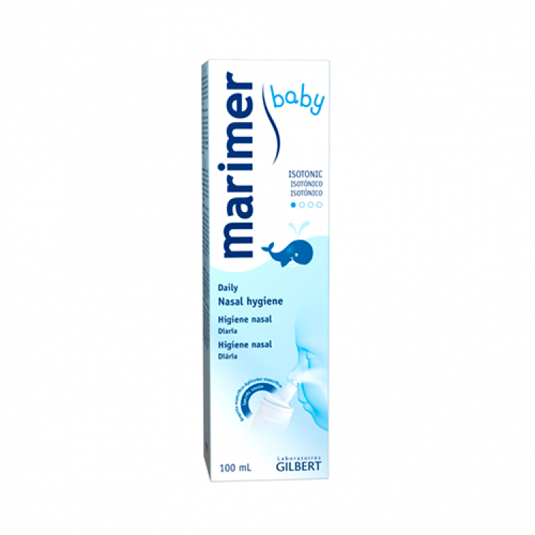 Marimer Baby Spray Nasal Isotónico 100ml é uma água do mar 100% natural e estéril , sem conservantes, naturalmente rico em sais minerais e oligoelementos marinhos, o spray nasal Marimer está recomendado para crianças e adultos, para a higiene diária das fossas nasais, especialmente em caso de nariz entupido ou seco.