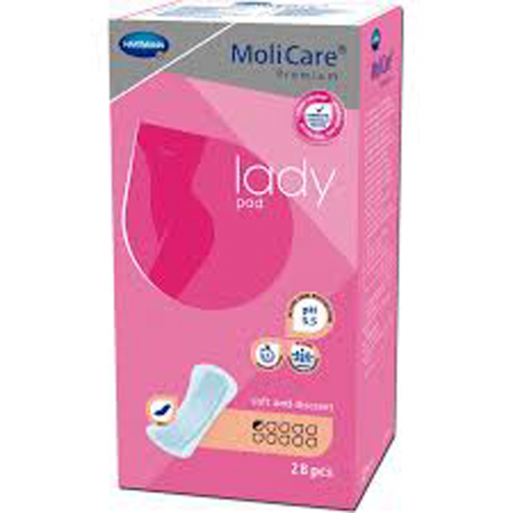 MoliCare Premium Lady Pad são pensos absorventes femininos, anatomicamente moldados, para perdas de urina ligeiras a moderadas.