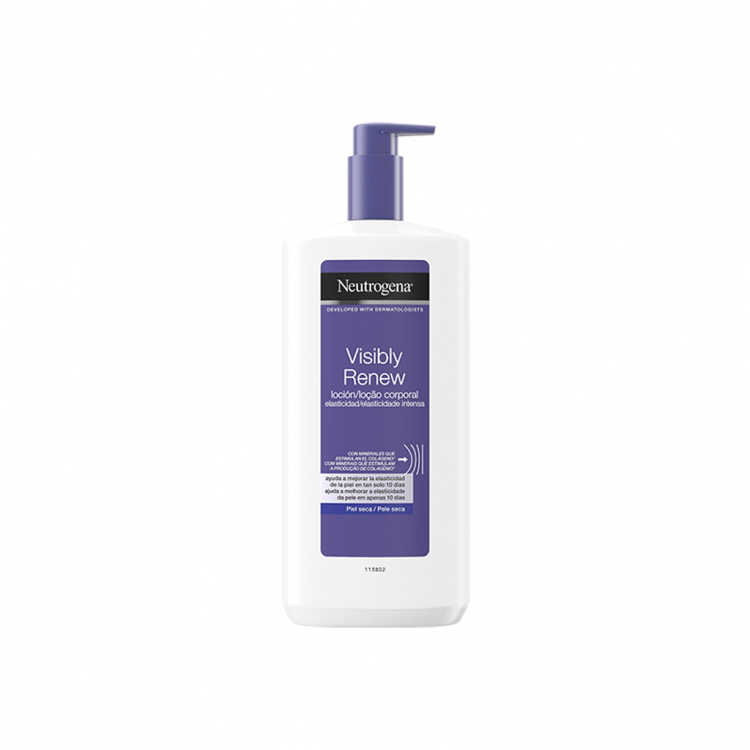 Neutrogena Visibly Renew Body Lotion é uma loção corporal que ajuda a melhorar a flexibilidade e elasticidade da pele em apenas 10 dias. Proporciona uma hidratação diária de longa duração. Estimula a produção de colagénio natural, proporcionando uma maior elasticidade à pele. Textura de rápida absorção, que deixa uma sensação delicadamente perfumada e macia. Ideal para pele seca.