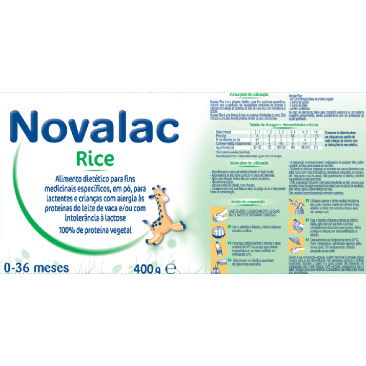 Novalac Rice é um alimento dietético para fins medicinais específicos para lactentes e crianças com APLV (alergia às proteínas do leite de vaca) e/ou com intolerância à lactose.