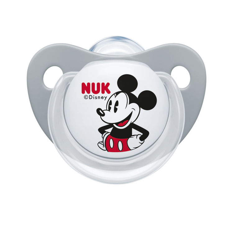 A chupeta Nuk Mickey Silicone Soother T2 foi especialmente concebida para bebés entre os 6 e 18 meses. A forma da sua tetina é anatómica, representando o mamilo da mãe, gerando uma necessidade inata de sucção por parte do bebé, que saberá automaticamente como agir perante a chupeta.