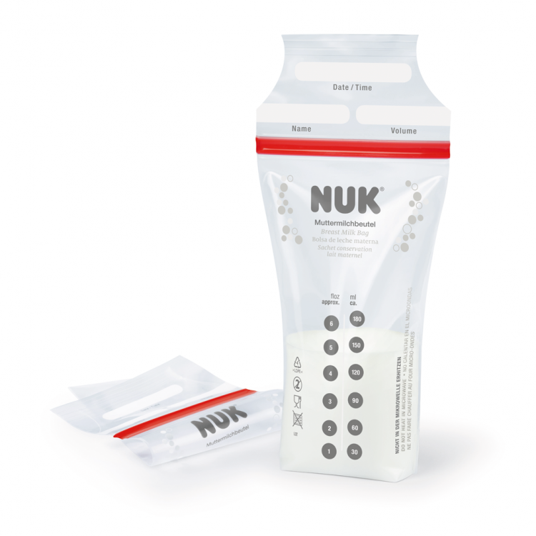 Os Sacos para Congelação de Leite Materno NUK são esterilizados e preparados para uso imediato.