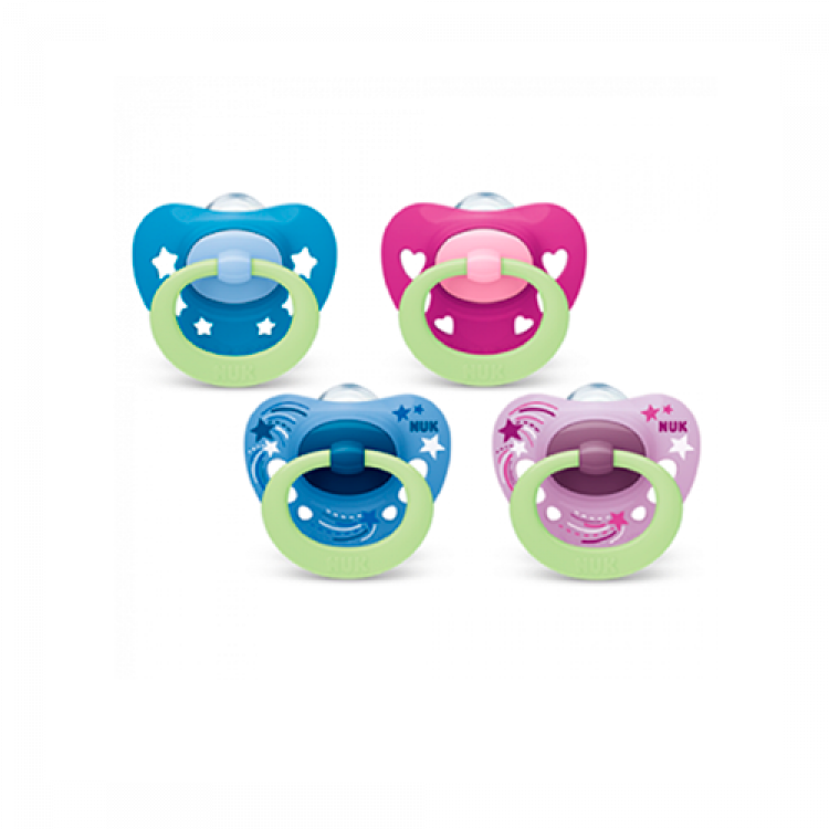 As chupetas NUK com efeito luminoso ajudam os bebés a encontrarem facilmente o caminho para a terra dos sonhos. Graças a um material luminoso e inofensivo para os bebés, produzem um brilho suave no escuro podendo ser encontradas rápida e facilmente durante a noite.