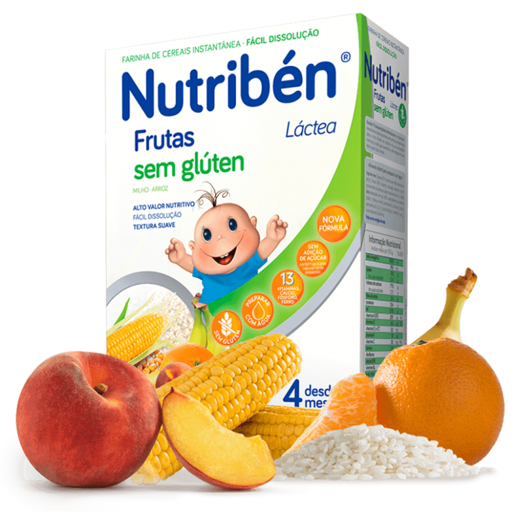 Nutribén® Frutas sem glúten farinha láctea é composta por cereais leves e saborosas frutas, enriquecida com vitaminas, cálcio e ferro. Devido ao equilíbrio da sua composição nutricional, é ideal para diversificar a alimentação do seu bebé a partir dos 4 meses. Sem adição de sacarose.