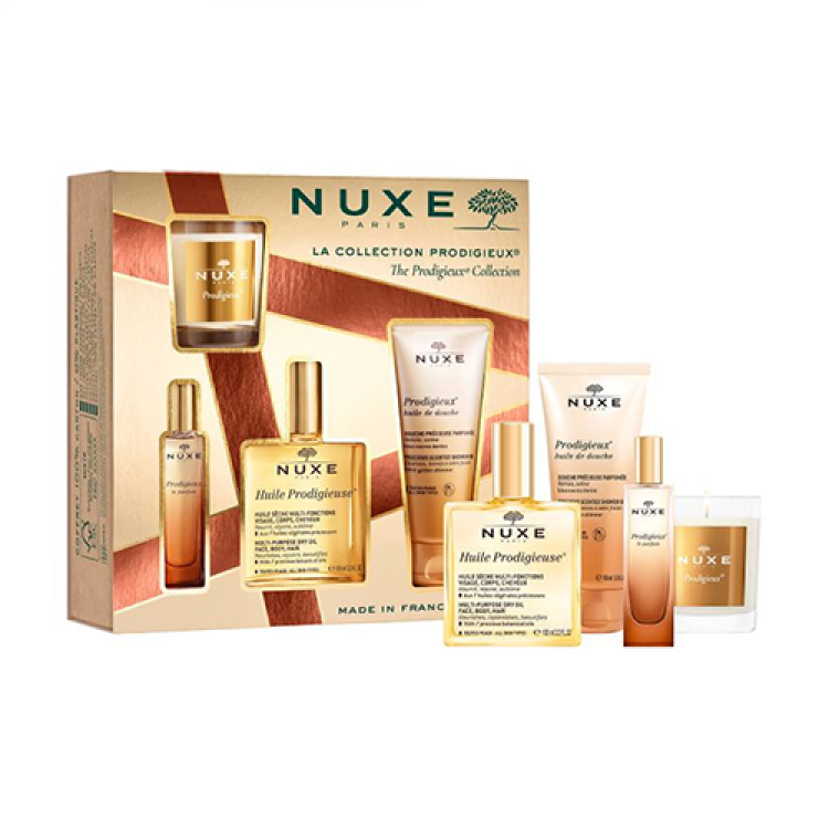 Coffret composto por: Huile Prodigieuse 100 ml, Prodigieux Le Parfum 15 ml + Óleo de Duche Prodigieux 100 ml.