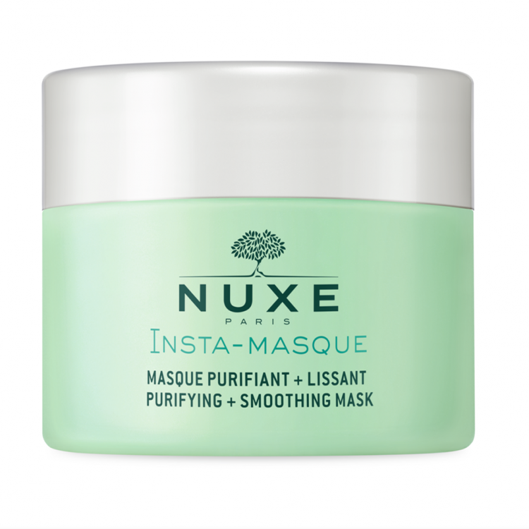 Nuxe Insta Masque Máscara Purificante e Suavizante tem uma textura fresca e leve, com uma combinação de ingredientes naturais: água de rosas e argila branca (kaolin) para uma ação purificante, alisante e iluminadora.