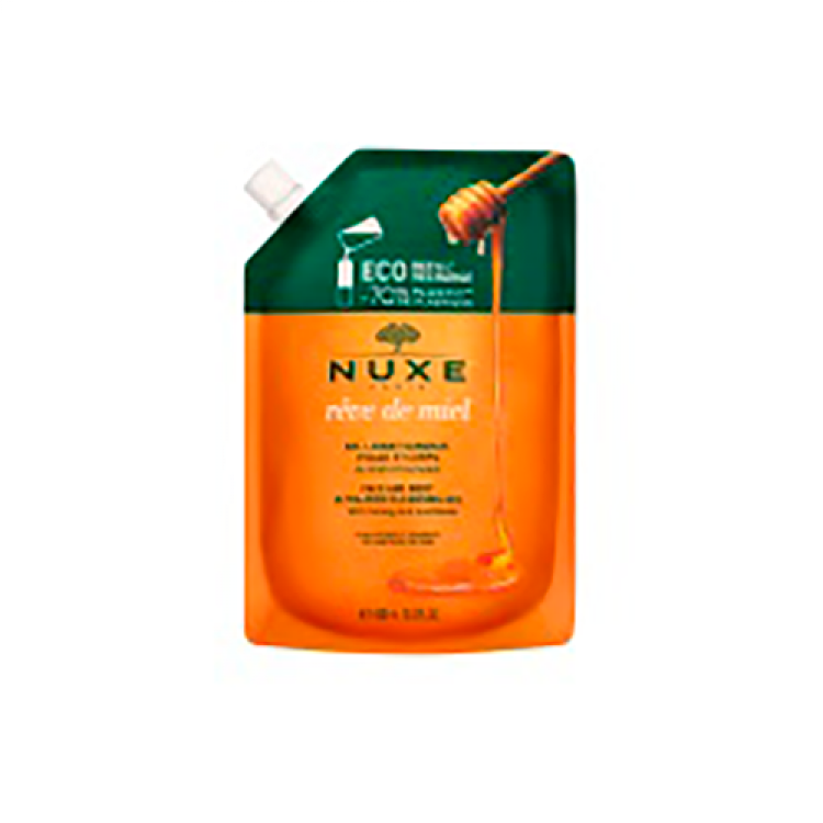 Nuxe Rêve de Miel Recarga ECO Gel de Limpeza 400ml é uma embalagem de edição limitada, formato recarga. Nuxe Rêve de Miel Gel de Limpeza é um cuidado de limpeza para o rosto e corpo que limpa respeitando a película hidrolipídica.