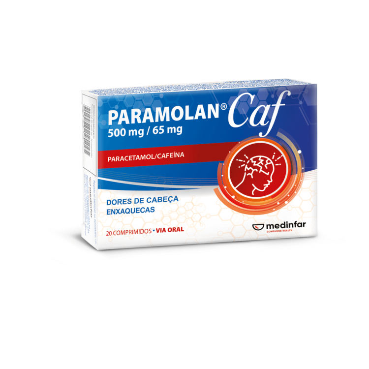 Paramolan Paramolan Caf 500mg/65mg está indicado em adultos e em crianças com idade igual ou superior a 12 anos, no tratamento de dores ligeiras a moderadas e estados febris. O tratamento de dores ligeiras a moderadas inclui: sintomatologia associada a estados gripais e constipações, cefaleia, incluindo enxaqueca, dor de dentes e dor decorrente de intervenções dentárias, odinofagia, dismenorreia, dores musculares e dores pós-traumáticas. Se não se sentir melhor ou se piorar após 3 dias (no caso de febre) ou após 5 dias (no caso de dores), tem de consultar um médico.