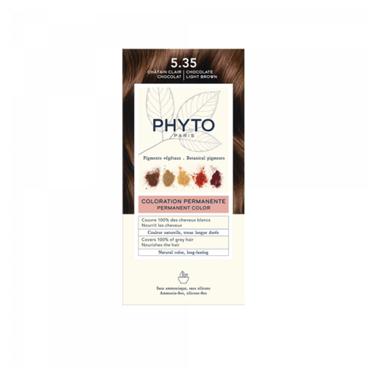 Phytocolor 5.35 Chocolate Castanho Claro. Os especialistas em cores da PHYTO criaram uma cor de cabelo com pigmento botánico permanente que combina o desempenho da cor com um cabelo bonito e uma acção suave no couro cabeludo.