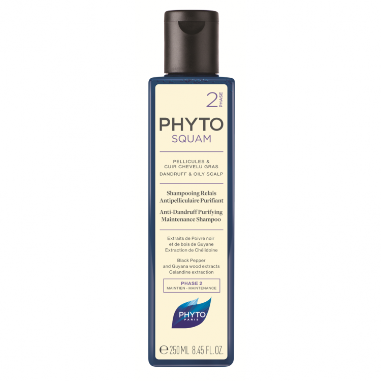 Phytosquam Champô de manutenção anticaspa para couro cabeludo oleoso, permite prolongar a eficácia da primeira fase de tratamento e previne o reaparecimento da caspa. Contém extratos de pimenta preta e de madeira da Guiana, um complexo que elimina a caspa de forma duradoura, preservando a barreira de hidratação cutânea. Os cabelos recuperam leveza e vitalidade.