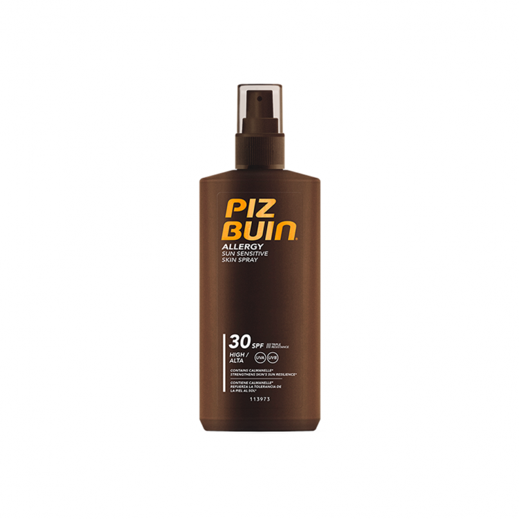 Piz Buin Allergy Spray SPF30 ajuda a prevenir o envelhecimento prematuro e está indicado para proteger a pele do corpo da radiação solar UVA/UVB.
