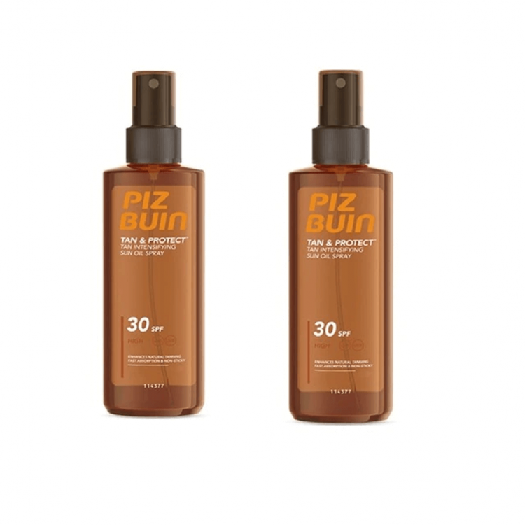 Pack contento duas embalagen de Piz Buin Tan & Protect SPF30, um Óleo Spray acelerador de bronzeado.