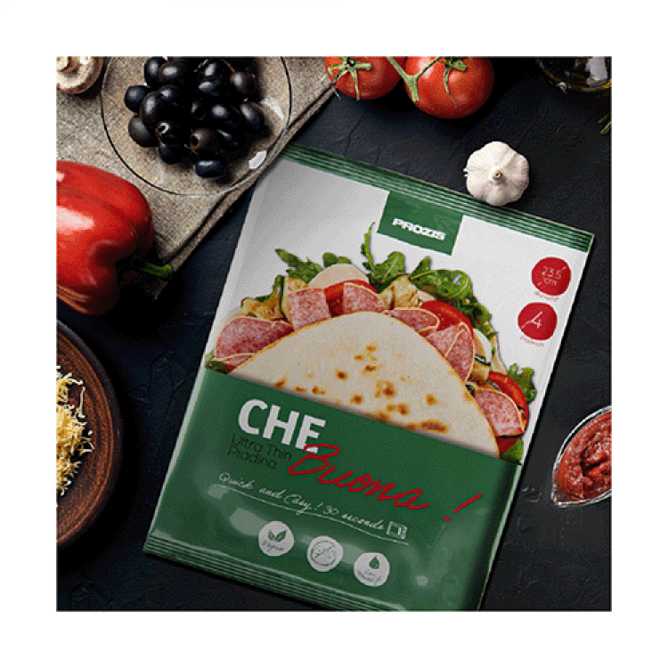 Cada embalagem vem com 4 piadinas com um diâmetro de 23,5 cm. Assim que estiver aberta, feche a embalagem e consuma as piadinas não utilizadas num prazo de sete dias.