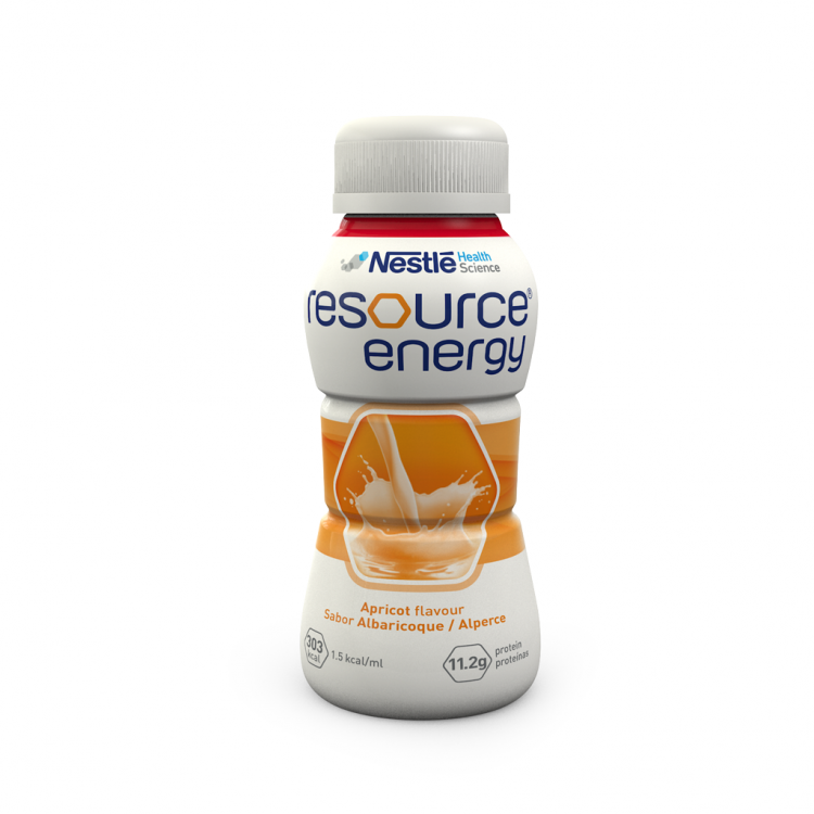 Resource Energy Alperce é uma Dieta oral completa hipercalórica, em formato 200ml, para indivíduos com necessidades energéticas aumentadas. Concentração calórica 1.5 kcal/ml, 11,2 g de proteínas por garrafa, Clinicamente isento de lactose, Isento de glúten, Contém todas as vitaminas, minerais e oligoelementos necessários para uma alimentação completa.IndicaçõesDiminuição da ingesta associada a anorexia leve a moderada ou patologia obstrutiva que dificulta a deglutiçãoPatologia neurológica com aumento da atividade: demências com agitaçãoIndivíduos com necessidades de suplementação moderada (600kcal/dia)- Perda de peso leve (<5%/3 meses)- Doenças inflamatórias em fase inicial- Situações que requerem controlo proteico- Doença de Parkinson- Restrição hídrica moderada- Indivíduos com disfagia associada a patologias descritas anteriormente