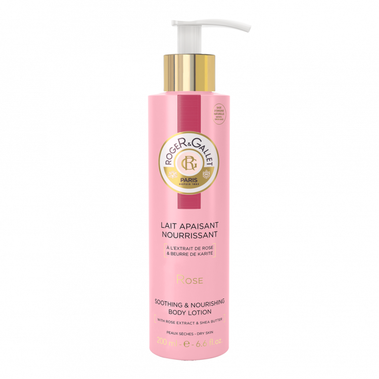 Leite corporal hidratante com essência a rosa, indicado para mulher.