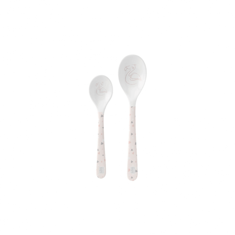 Saro Conjunto de Colheres é um conjunto de duas colheres (grande e pequena) para bebé, especialmente concebidas para serem fáceis de segurar pelas mãos dos mais pequeninos. Uma colher grande de 17 cm e uma pequena de 14 cm, para usar sempre que precisa.