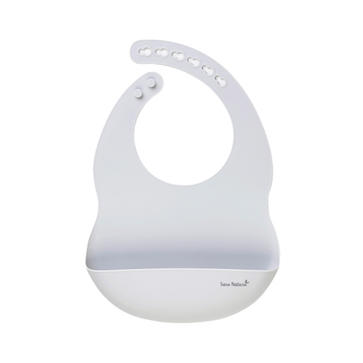 Este babete é feito de silicone alimentar, um material ecológico muito resistente.