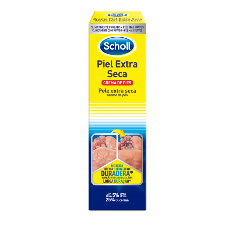 Scholl Creme Pele Extra Seca é um cuidado para pele extra seca que suaviza e hidrata de forma intensa, mesmo nas zonas mais endurecidas. É absorvido rapidamente e aumenta os níveis de humidade. Com o uso regular tem um efeito duradouro.