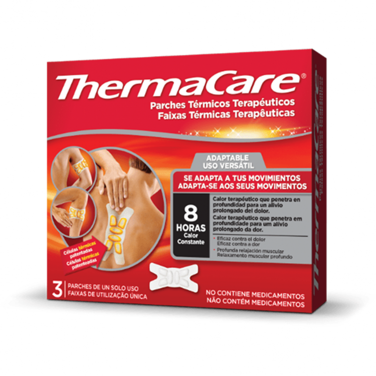 As Faixas Térmicas ThermaCare® para uso versátil são particularmente indicadas para o tratamento da dor muscular e articular localizada. Estas faixas não irritantes com 6 células térmicas têm um uso versátil e colam à pele através de quatro extremidades adesivas.