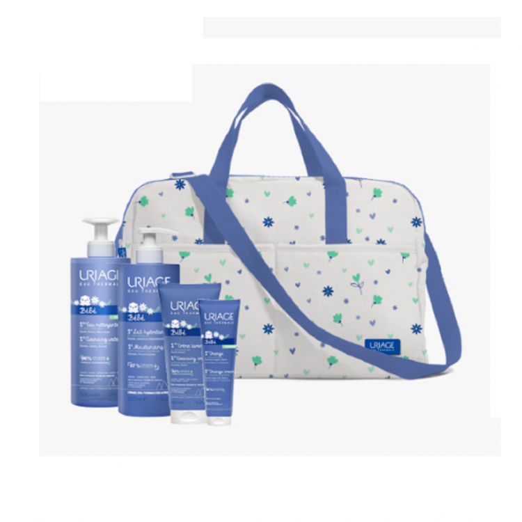 Inclui 4 cuidados: Uriage Bebé 1º Leite Hidratante (500ml); Uriage Bebé 1º Creme Lavante (200ml); Uriage Bebé 1º Creme Muda da Fralda (100ml) e Uriage Bebé 1ª Água de Limpeza (500ml).