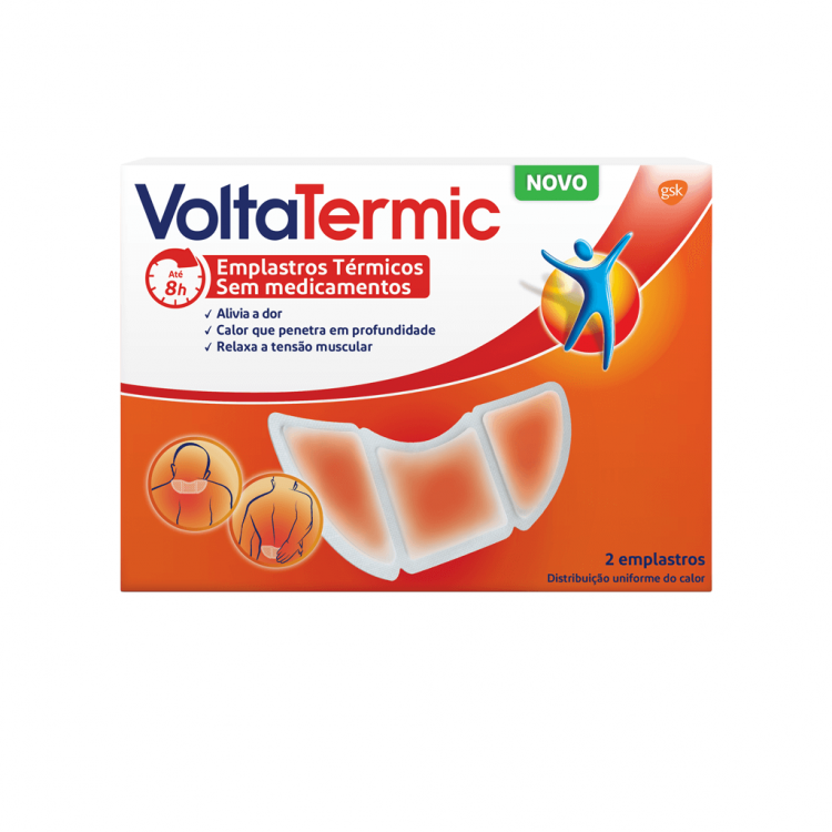 VoltaTermic é um emplastro não medicamentoso que proporciona calor terapêutico até 8 horas. A libertação contínua de um baixo nível de calor estimula os termorrecetores para aliviar a dor, aumenta o fluxo sanguíneo e relaxa os músculos.