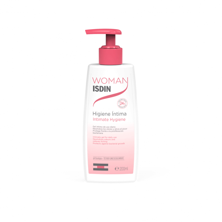 Woman ISDIN Higiene Íntima é um gel de cuidado íntimo suave, de uso diário, que neutraliza os odores, alivia o prurido e ajuda a prevenir contra agressões microbiológicas externas. Com pH 5.5.